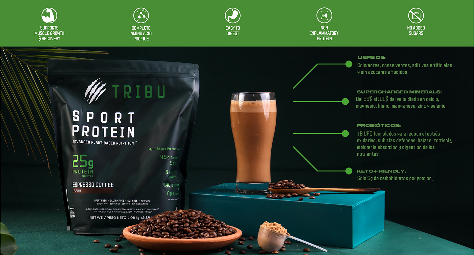 – Multi-Source Plant Protein Complex: Proteína vegetal (plant-based) a base de una mezcla de arveja, semillas de girasol, chocho y quinoa.