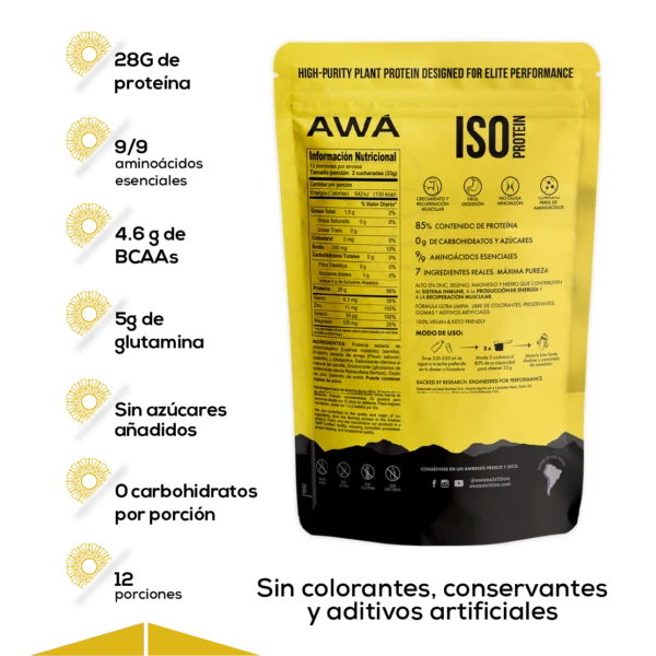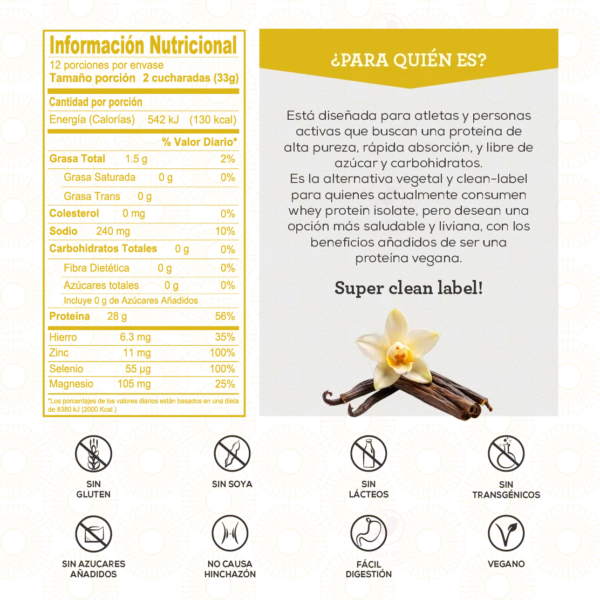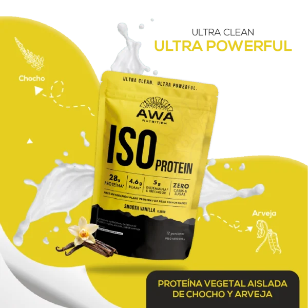 ISO PROTEIN™ es una formula ultra limpia la cual contiene únicamente una mezcla de dos proteínas vegetales aisladas (proteína aislada de chocho y proteína aislada de arveja), glutamina, fortificado con zinc y selenio, y endulzado naturalmente con stevia.